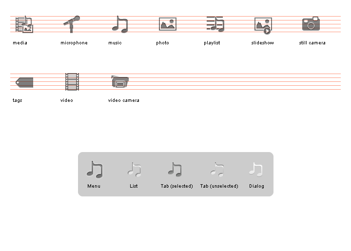 The Android Multimedia Set contains ten icons for common multimedia tasks such as photo, music, video, camera and playlist. The icons come in two sizes suitable for applications that use List, Tab, Dialog & Menu UI features, included selected and unselected states for Tab icons.