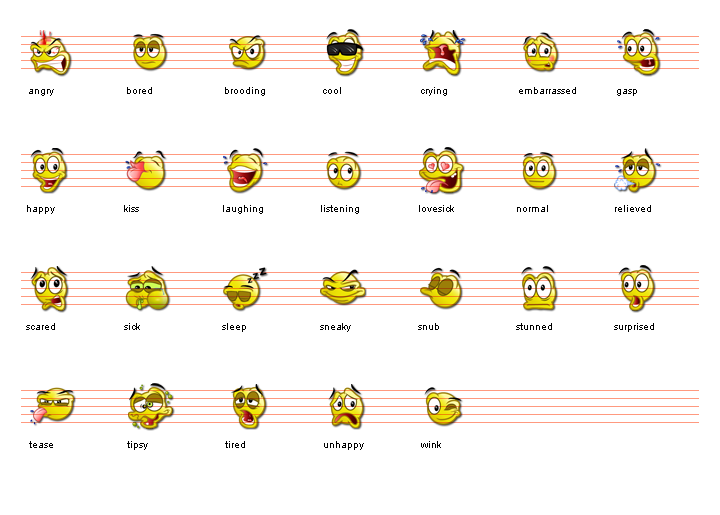 The Emoticon Set fills the requirement for very high quality 'smiley' images. Whether you are creating instant messanging clients, chat software, childrens programs, help wizards or games, this collection will instantly appeal. The same character is presented with a distinct style, and a large number of facial expressions.