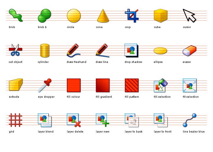 The Imaging Set allows anyone creating graphics based software to add a sharp, professional look to their application. With icons ranging from general drawing tools, to shapes and layer management, it can be used in any graphic editing package.