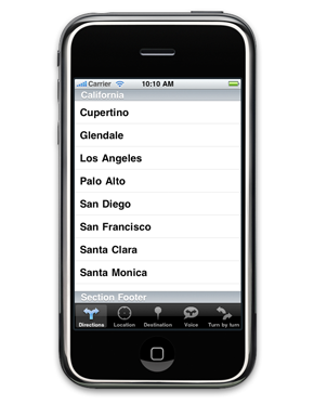 The iPhone Mapping Set contains five icons for common mapping tasks such as location, destination, directions, voice navigation and turn-by-turn. The icons come in four sizes suitable for applications that use either a TabBar or a Toolbar. Instructions on how to add these icons can be found here in our support section.