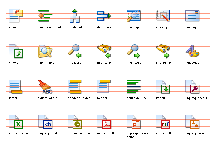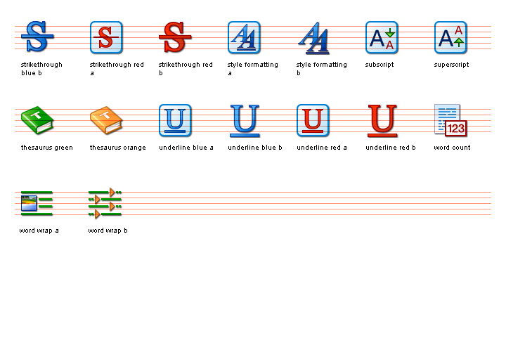 The Word Processing Icon Set is ideal for any applications that allow users to manipulate text, graphics, tables, fonts and colours. Primarily suited for word processing and text editing software, this big collection of icons includes many import and export images, as well as borders and text styling.